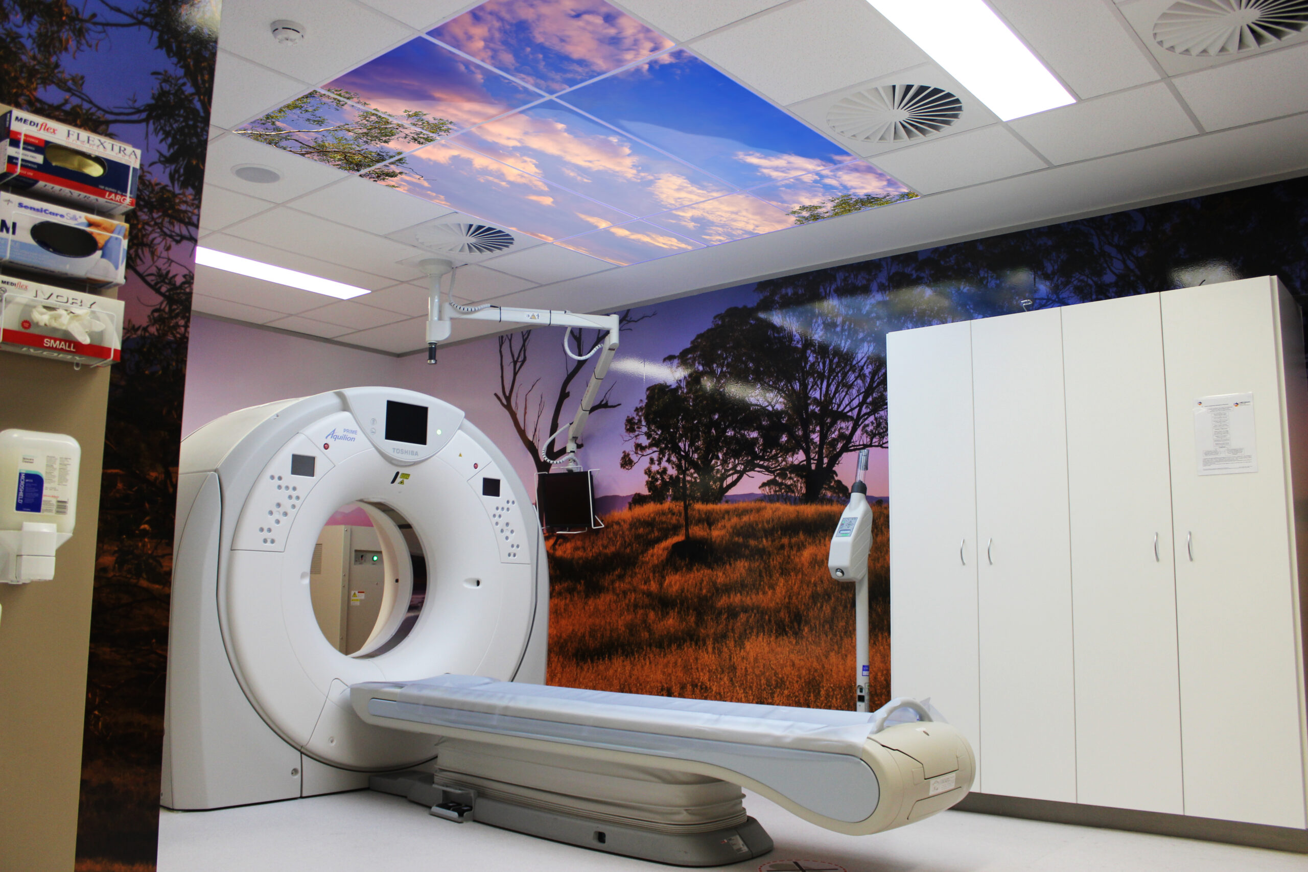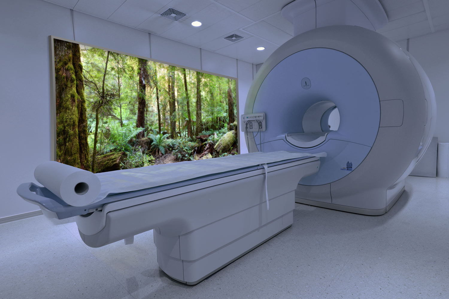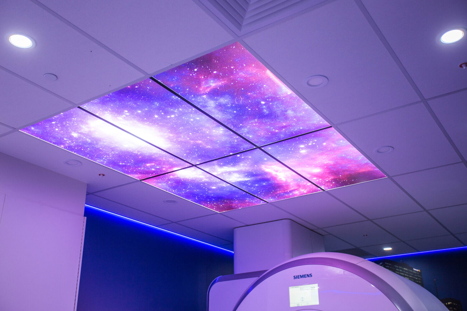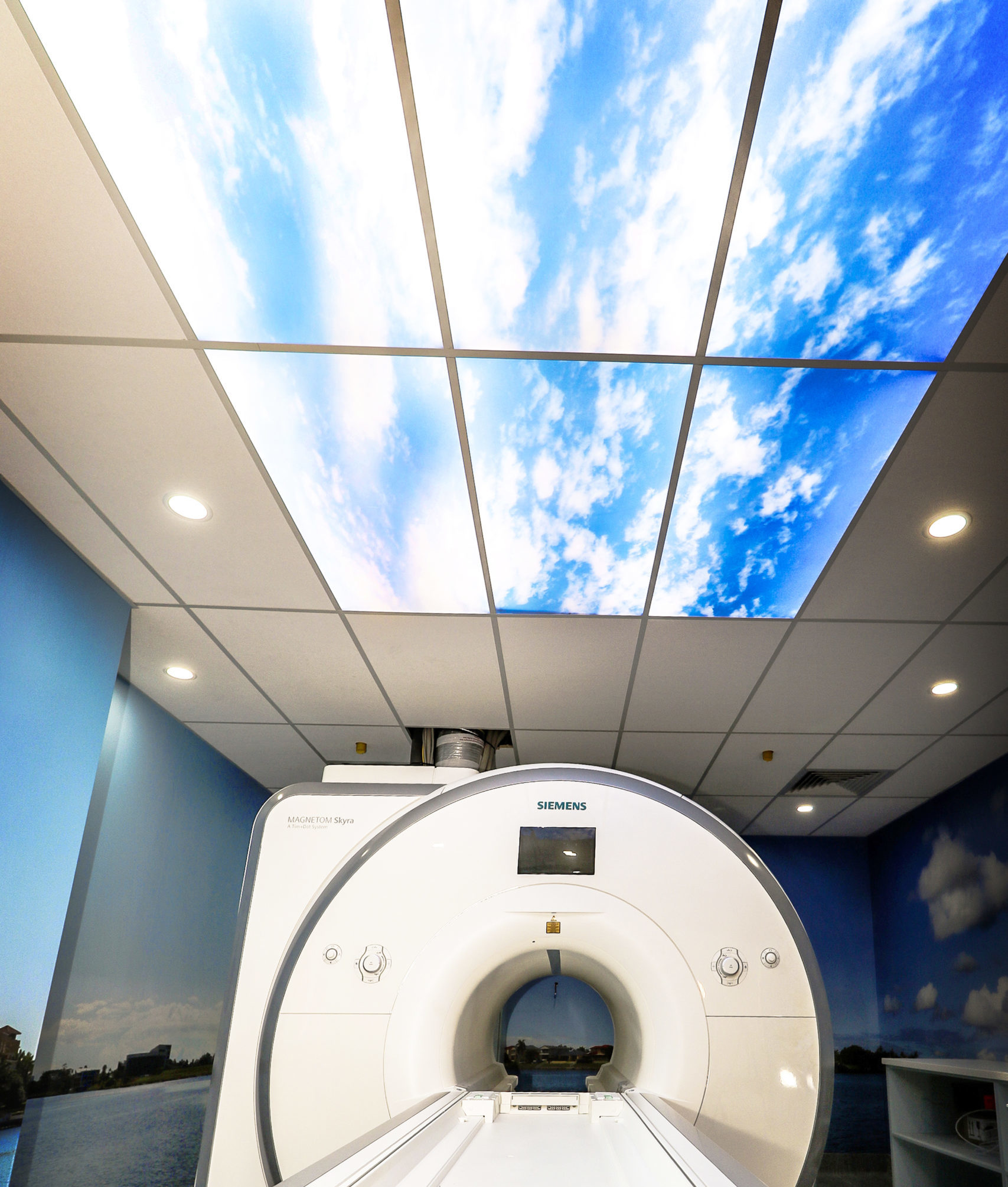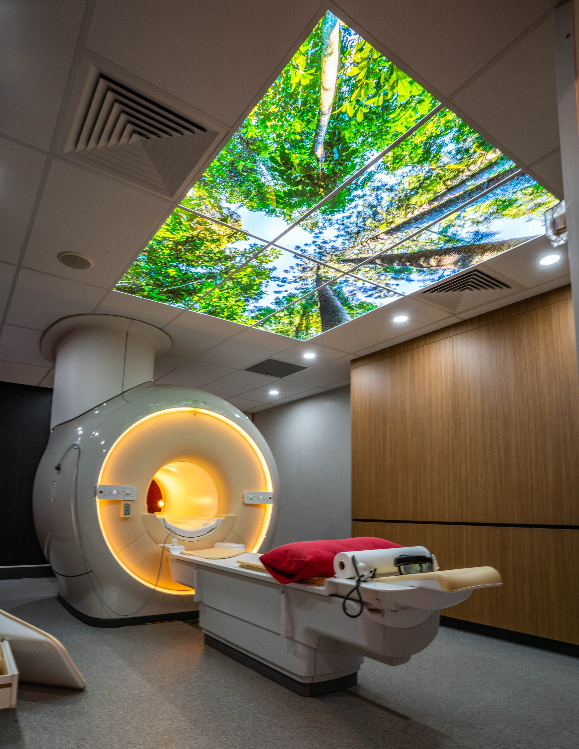 Virtual Skylight provide a realistic window in the ceiling that allows patients who are laying on an imaging table to gaze into. Displaying anything imaginable; clouds, a thought-inspiring night sky, or a beautiful jungle canopy. These virtual openings are often the center piece of an integrated solution but can equally work in isolation to transform any dull or sterile room into something warm and welcoming.